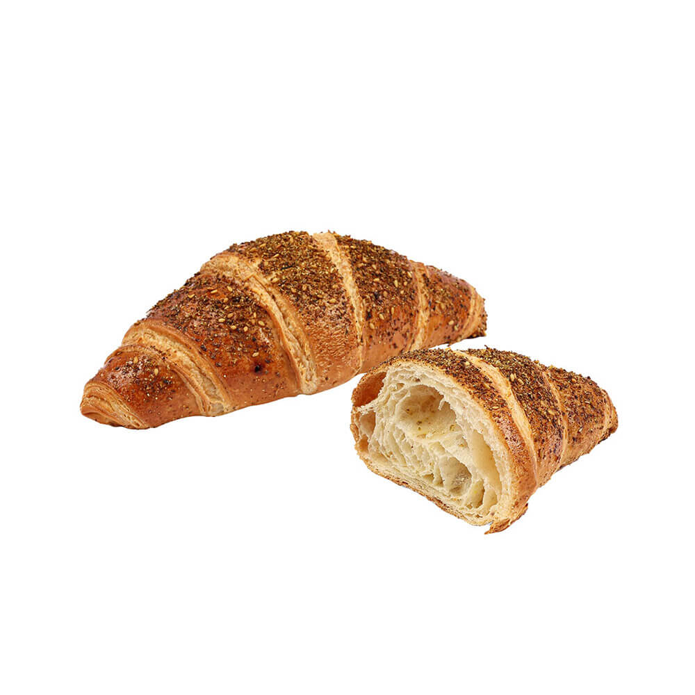 WHEAT Flour, Water, BUTTER, Vegetable Fats [Palm, SOYA, Sunflower], Zaatar Powder (Thyme, SESAME, Sunflower Oil, Vegetable carbon: Carbon E153, Coriander, Caraway, Sumac, Curcuma), Sugar, EGG, Yeast, Salt, Corn Oil, Corn Starch, Vinegar, Bread Improver (Emulsifier: E472e [palm], Flour treatment agent: E300).
