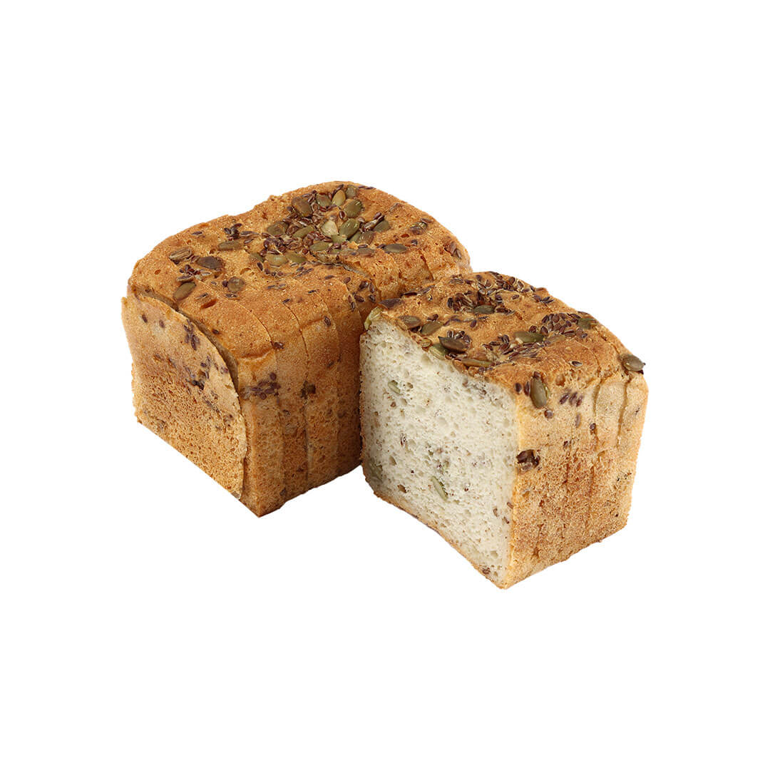 Rice Flour, Water, Tapioca Starch, Potato Flour, Vegetable Oil (Olive), Pumpkin Seed, Linseed, Sunflower Seed, Sugar, Guar Seed, Salt, Yeast, Added Fiber, Preservative: Calcium propionate E282, Sorbic Acid E200.